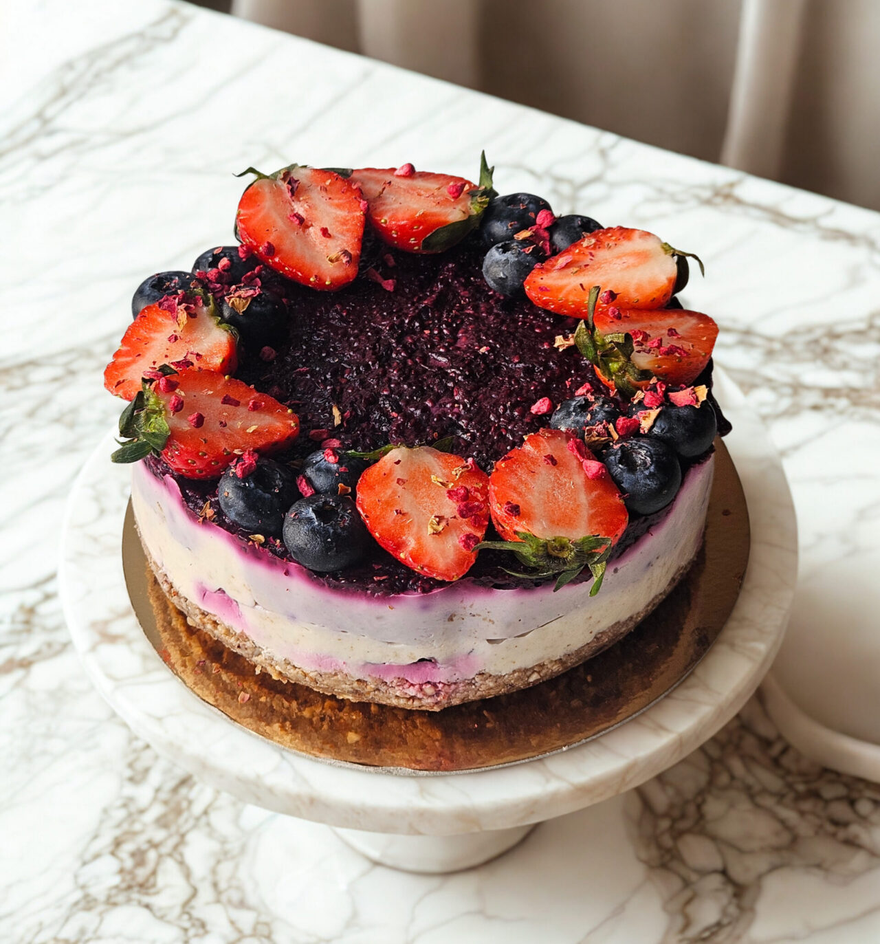 Hapuka marjamoosiga ja sisse peidetud rohkete marjadega pehme toortort. Nii puhastest koostisosadest, et täitsa toidukorra eest.