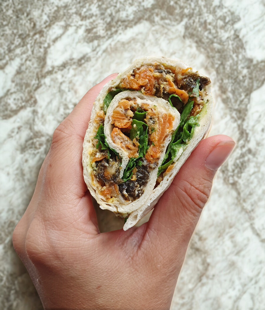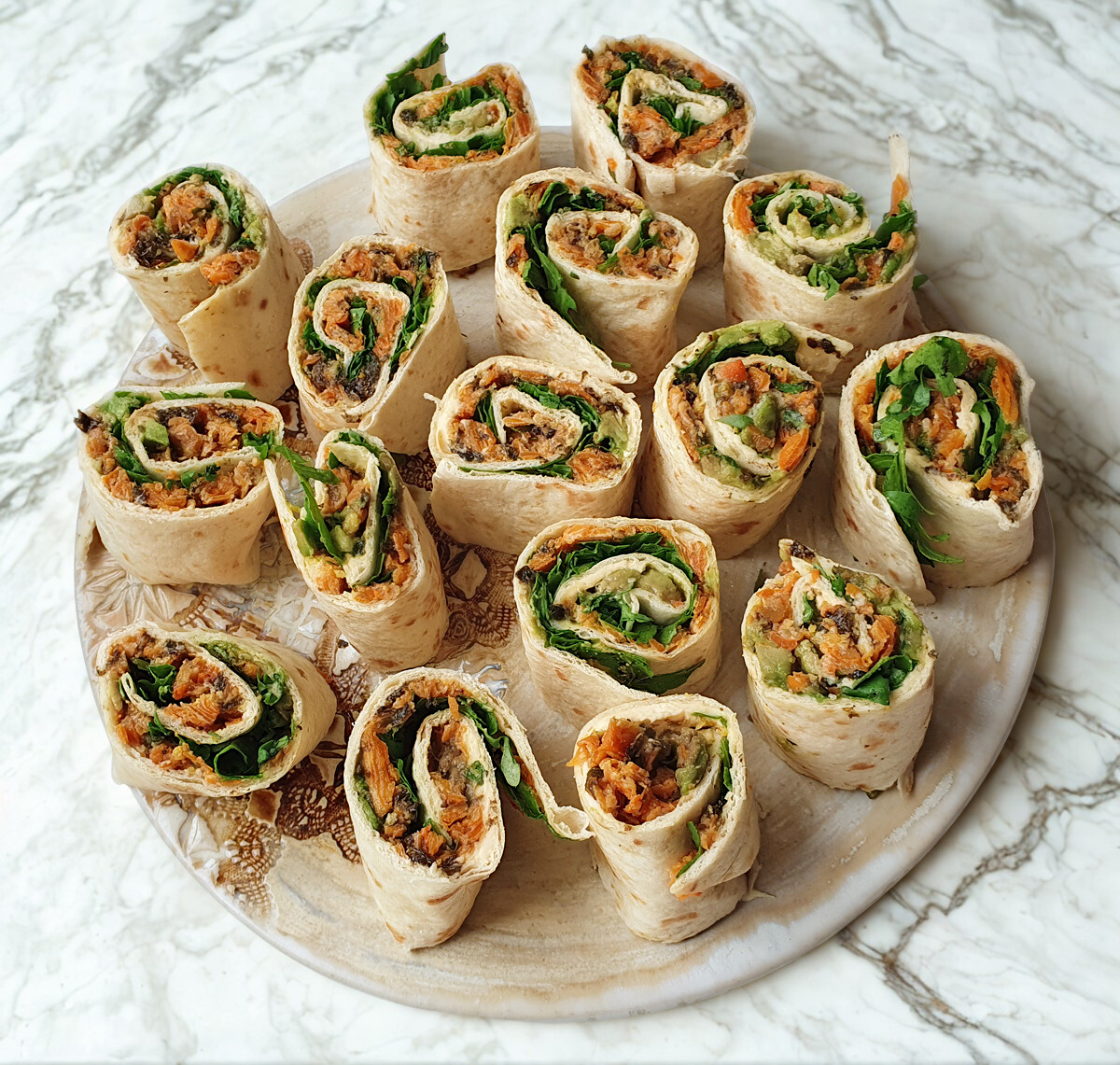 Need värsked ja maitsvad tortiljarullid on ideaalne suupiste või kerge eine. Pehme tortilja sees kohtuvad kreemjas avokaado, suitsuse mekiga porgand, vürtsikas rukola ning siidine India pähkli kreem, mis seob kõik maitsed täiuslikuks tervikuks.